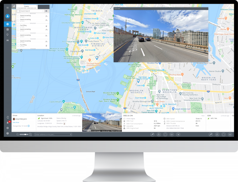You can see a street view of the moving vehicle.