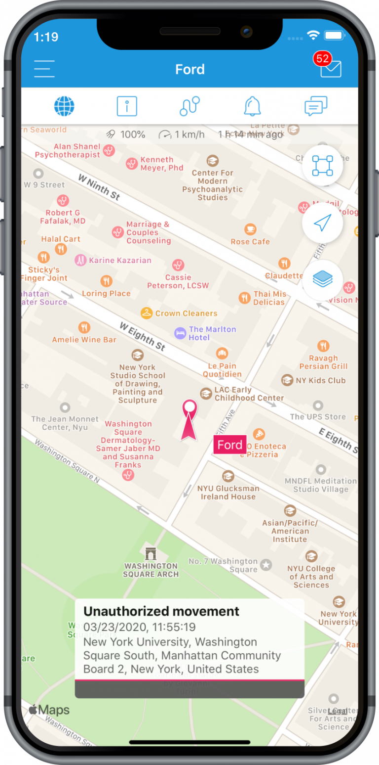 Get real-time alerts when vehicles enter or exit areas you define.